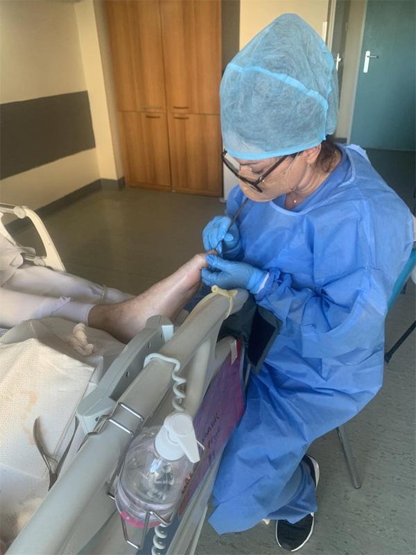 Η εξειδίκευσή της περιλαμβάνει αφαίρεση κάλων & τύλων, εισφρύσεις ονύχων, καθώς και αντιμετώπιση μυκητιάσεων ονύχων και πέλματος.